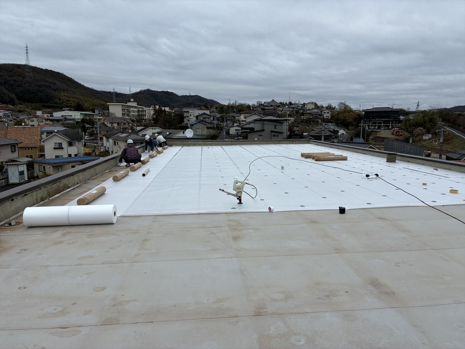 その作業も本日中には終わる予定で、明日からはルーフィングシートの張り付けが始まる予定です。