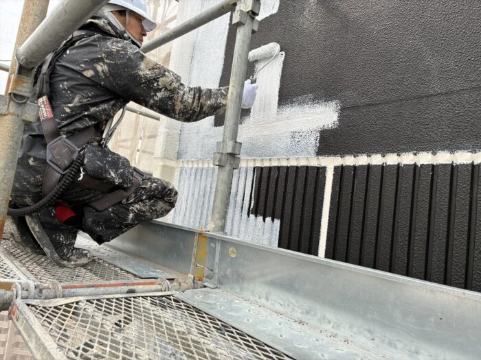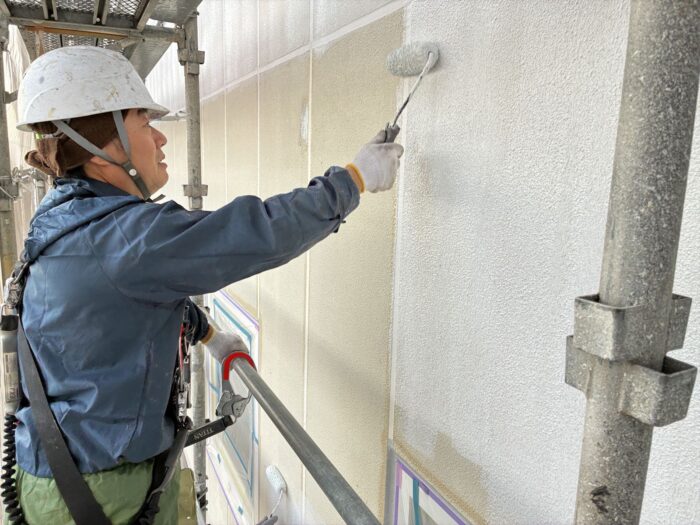 今週は南面の塗装と北面の水洗い、そして、残りのシーリング打設を行う予定です。