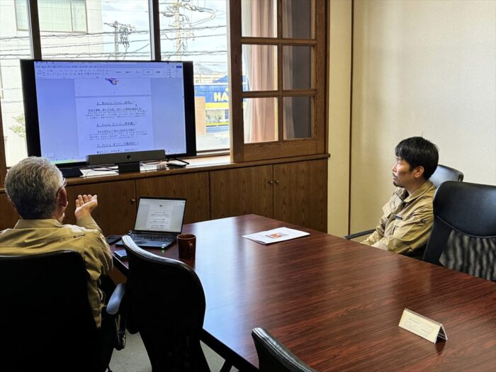 今朝10時より、昨日入社した加藤の新入社員オリエンテーションが始まりました。