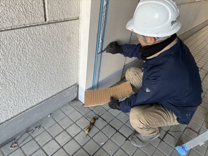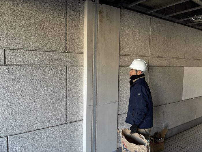 『うちの職人チームが、今日も左官とコーキング作業を頑張ってくれています。